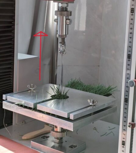 一か所だけではなく、同じ芝を位置を変えて何度(10か所以上)も引っ張り、平均値がその芝の強度として認められます。