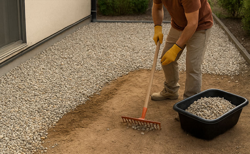 砂利は、雑草対策や水はけの改善、防犯効果などの目的で多くの庭で採用されています。