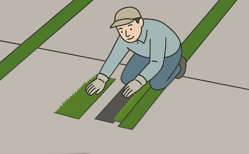 駐車場の目地(スリット)に人工芝をDIY施工する方法